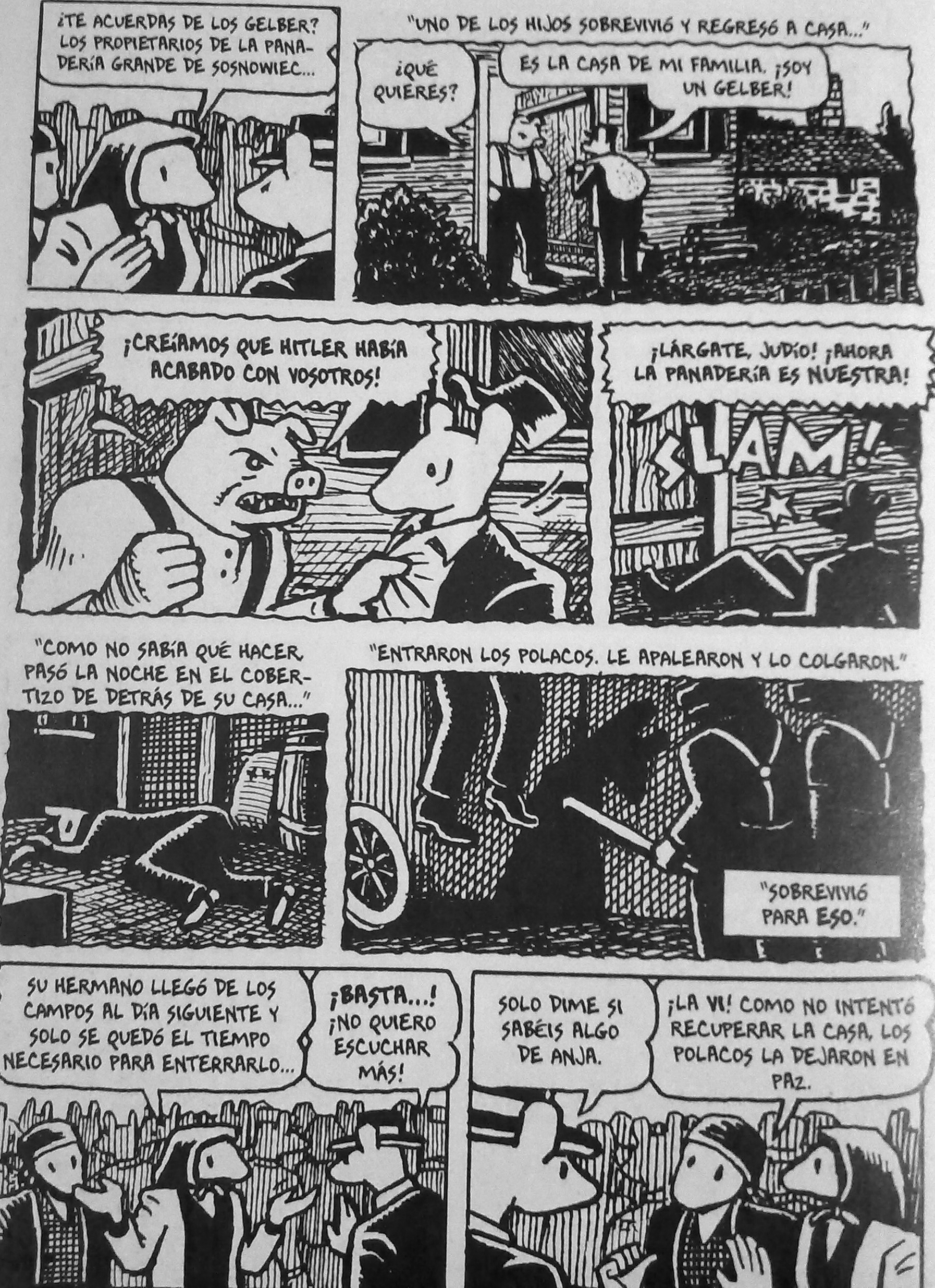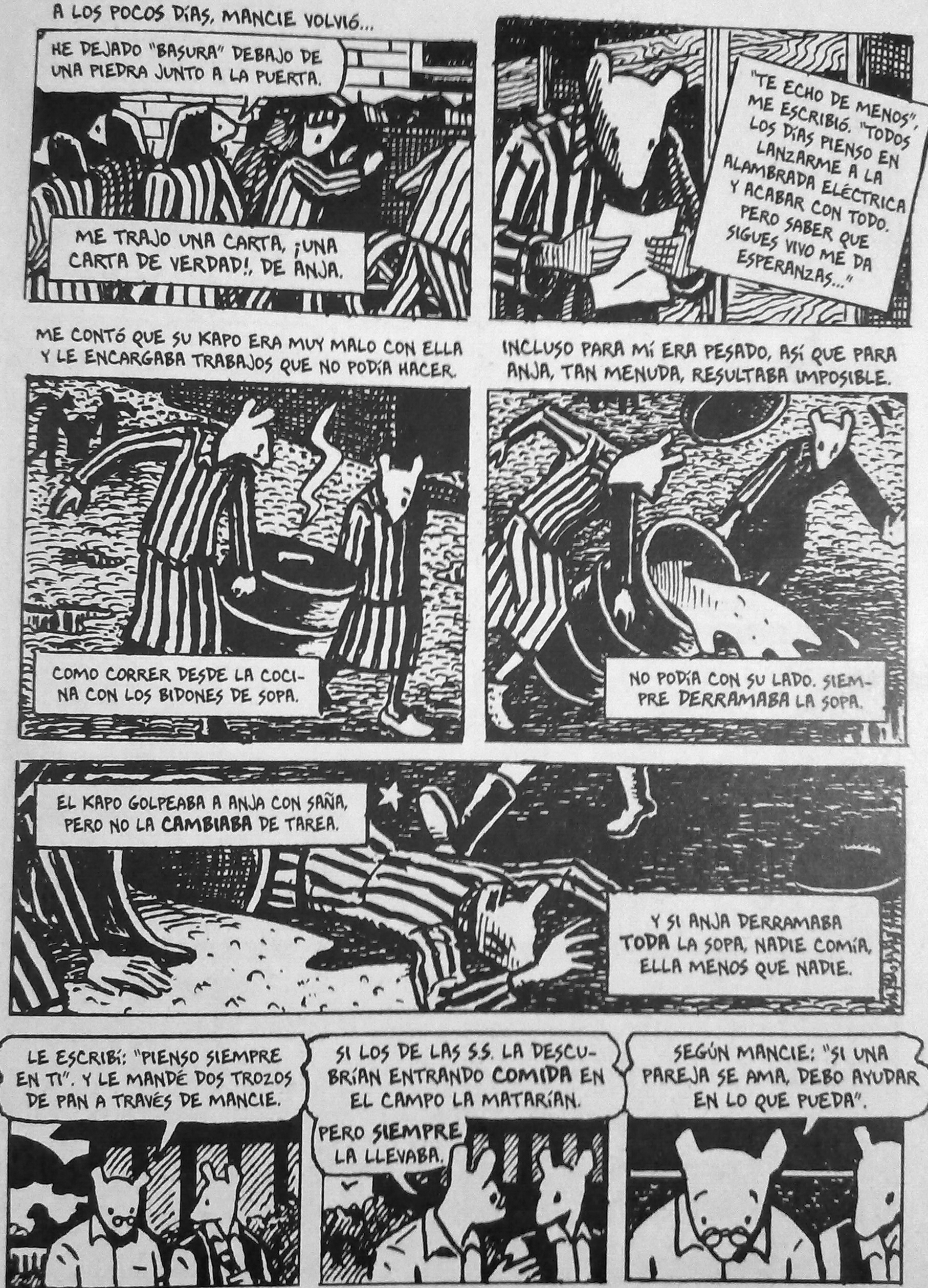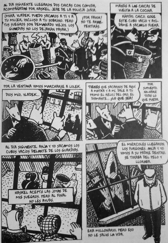 La mayoría de los que vieron el rostro de la esfinge murieron. Muchos supervivientes se suicidaron años más tarde, como Primo Levi, como Anja -la madre de Spiegelman-, porque en el fondo no era posible sobrevivir al Holocausto. Los que sobrevivieron no eran más dignos de admiración que los asesinados, no eran ni mejores ni peores que ellos. Como dice uno de los personajes de Maus: La vida siempre elige el lado de la vida y se culpa a las víctimas. Pero no sobrevivieron los mejores ni murieron los mejores. ¡Fue el azar!